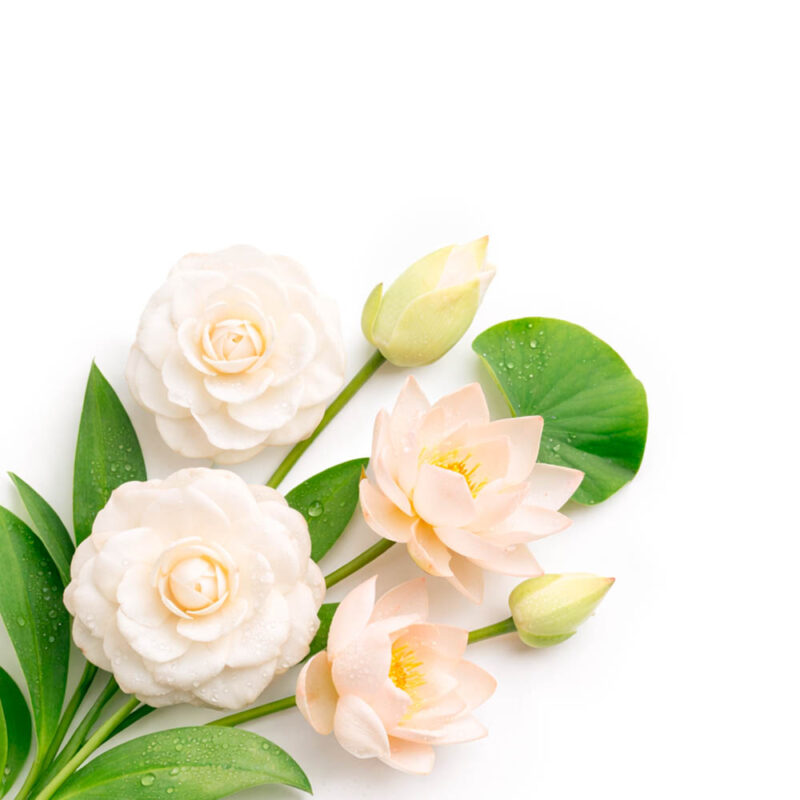 камелия, лотос, белая лаванда